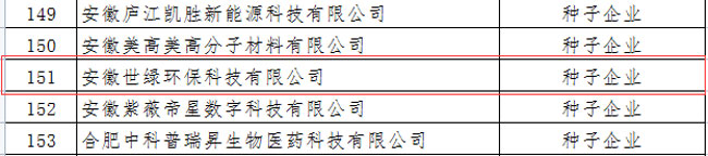 安徽世綠環(huán)??萍加邢薰境晒θ脒x合肥市2021年度高成長(zhǎng)企業(yè)