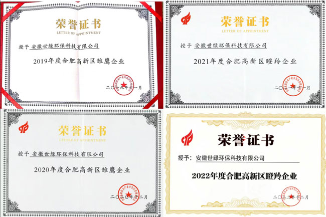 世綠環(huán)保連續(xù)三年獲得合肥高新區(qū)高成長(zhǎng)“瞪羚企業(yè)”稱號(hào)